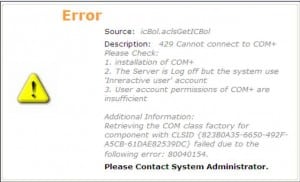 | Description of the Problem | This error is received upon logging in to iBrowse. This error appears because the user who configured the IIS (Internet Information Services) does not have enough authorizations to activate COM+. |